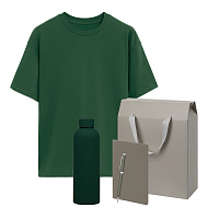 Набор с одеждой RUST (футболка, термобутылка, блокнот, ручка), зеленый/серый