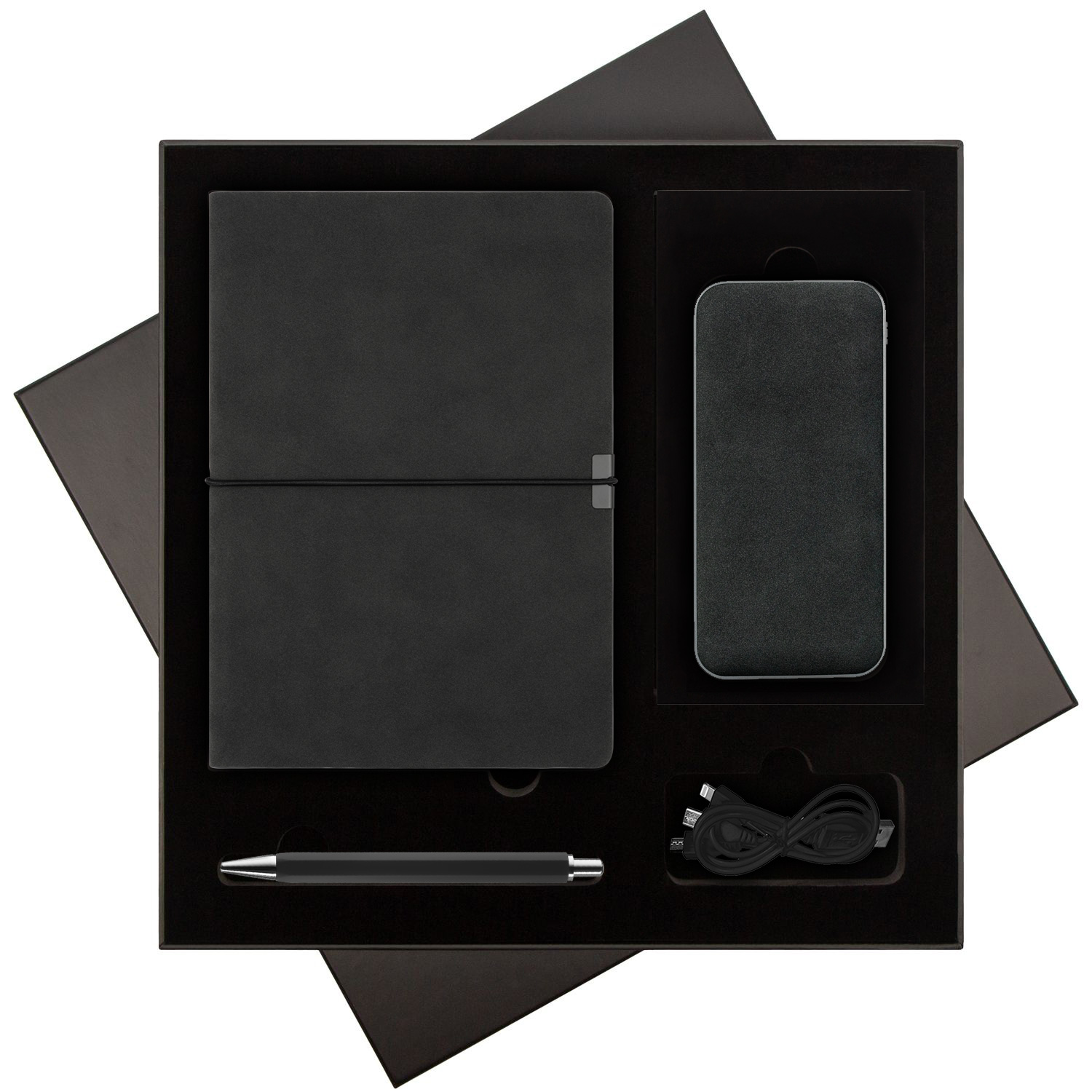 Подарочный набор In Velour, серый (ежедневник, ручка, аккумулятор)